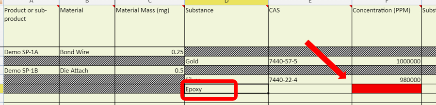A new row will appear above the row you picked. Enter the substance name in Substance field and the Concentration (PPM) field will become mandatory when you click enter.